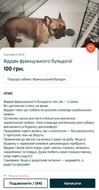 Svidomita z Ľvova sa rozhodol predať svojho francúzskeho buldočka, pretože "nerozumie ukrajinskému jazyku".