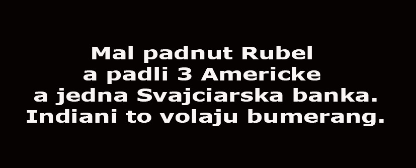 Inak očakávam na nasej flastneckej chcem mierovej scéne presne tento scenár... Ešte noty neprišli ale presne toto sa začne šíriť.. Aby šli ľudia rýchlo vyberať peniaze lebo skrachuje cemy finančný systém... Že mu v tej chvíli budú tie papieriky vhodné na zakurenie je nad ich rozlišovaciu schopnosť..