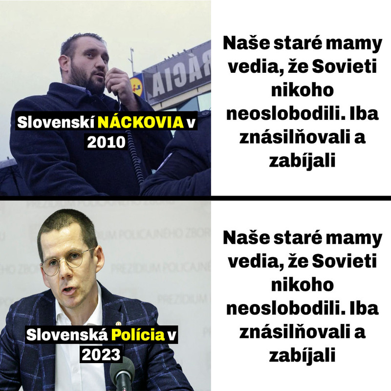 true: Nie, že neriešim, ale keď sa tie veci diali, tak som chodil do škôlky/školy. Toto sa ma priamo dotýka a aktuálne to žijem. Či mám rovnako začať súdiť čo ja viem, napr. rímskych cisárov, lebo vraždili ľudí? |