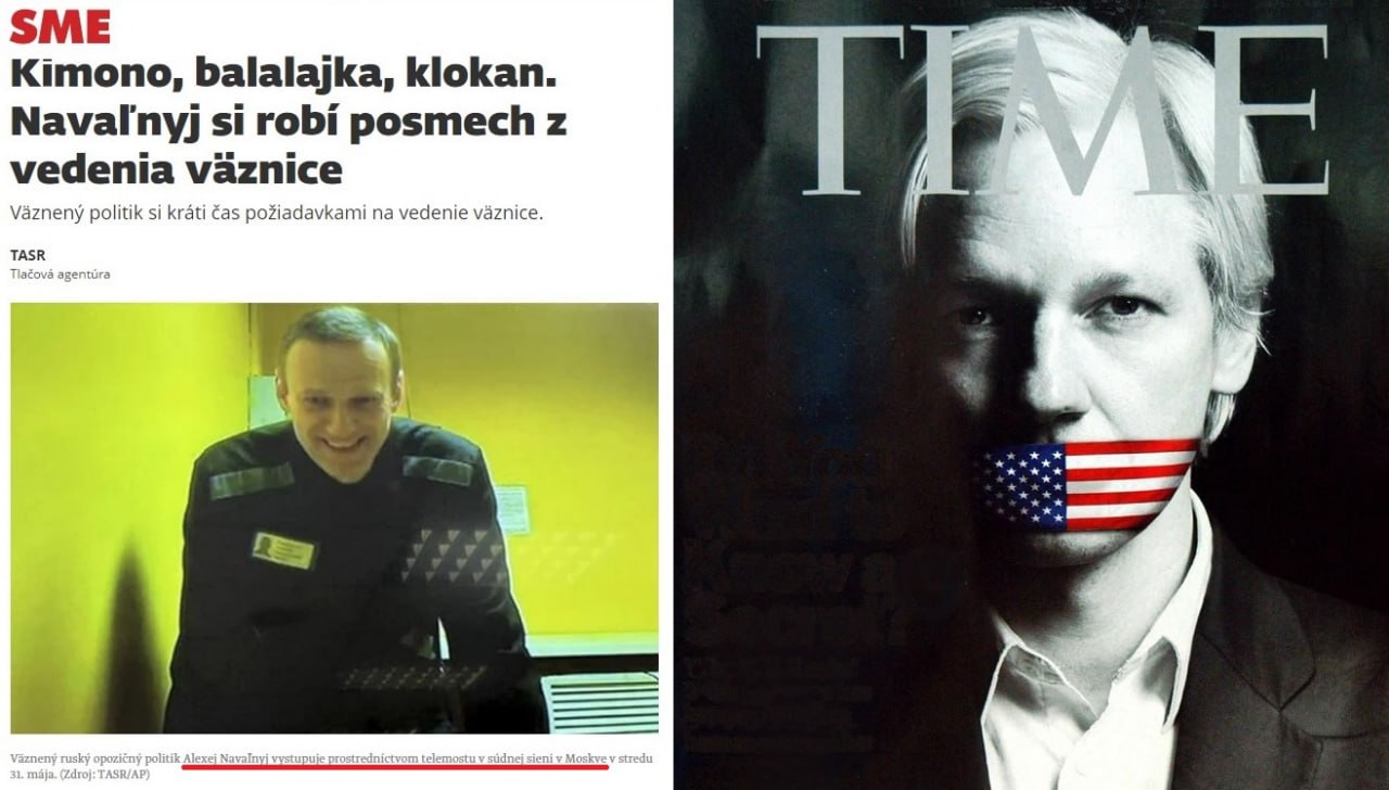 Na fotografii vľavo je ruský opozičný politik Alexej Navaľnyj. Ako sa dozvedáme z denníka SME, má sa očividne celkom fajn, keďže si čas kráti robením žartov z vedenia tamojšej väznice. A smeje sa pritom cez telemost do kamier. Viete v tom zlom a nebezpečnom ruskom väzení. Na fotografii vpravo je na titulke amerického týždenníka TIME austrálsky publicista a takzvaný whistleblower - Julian Assange. Fotografia je staršia, pretože aktuálnu z jeho väznice nemáme. Nevedno prečo, ale na rozdiel od nebezpečného ruského väzenia, sa v demokratickom a dobrom väzení v Anglicku, nemôže prihovárať cez telemost, nemôže sa smiať do kamier a nemáme ani informácie o tom, že by si čas v tamojšom slušnom väzení krátil robením žartov. Vlastne o ňom nevieme nič. Narozdiel od Navaľného, o ktorom nás naše médiá informujú na dennej báze. To jsou ty paradoxy... https://i.postimg.cc/0Q2dWknM/photo-2023-06-03-07-21-38.jpg |