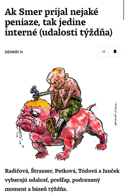 Cárova "neporaziteľná" armáda dostáva na Ukrajine už vyše roka poriadne do držky. Žiadne "Kyjev za 3 dni" sa nekonalo, tobôž nie "Berlín za 2 týždne a Fašington do mesiaca". Z epochálnej Putinovej špeciálnej operácie zostalo len veľa ruskej krvi vsiaknutej v ukrajinskej zemi, hory zničenej techniky, masa zdecimovaného tankového vojska a trpká pachuť nesmiernej potupy a hanby. Putinská propaganda už vopred reaguje na očakávanú ukrajinskú protiofenzívu a potrebuje na to pripraviť aj ruskú verejnosť a s ňou tiež kremeľské metastázy, ktoré starostlivo pridájajú mozgy frustrátov a putinských otrokov svojimi primitívnymi lžami a manipuláciami. Nie, Rusko na Ukrajine nebojuje proti NATO. To len Ukrajinci získali a naučili sa používať moderné západné zbrane, na ktoré zastaralý sovietsky model vedenia vojny nie je schopný adekvátne reagovať. Takže ešte raz a jednoducho milí frustráti - to, že Ukrajinci ženú okupantov zo svojej vlasti aj s pomocou moderných západných zbraní neznamená, že putinská fašistická horda tu bojuje s vojskami NATO. Svetu mier! |