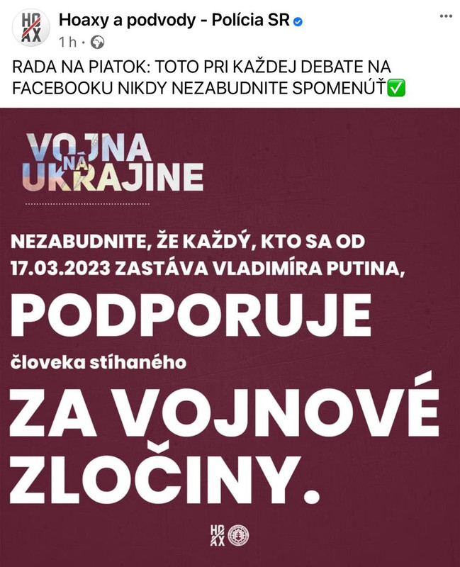 Však ale je to pravda, každý, kto sa zastáva Putlera, tak v súčasnosti už podporuje človeka stíhaného sa vojnové zločiny. Dúfam, že si na seba hrdý za to.