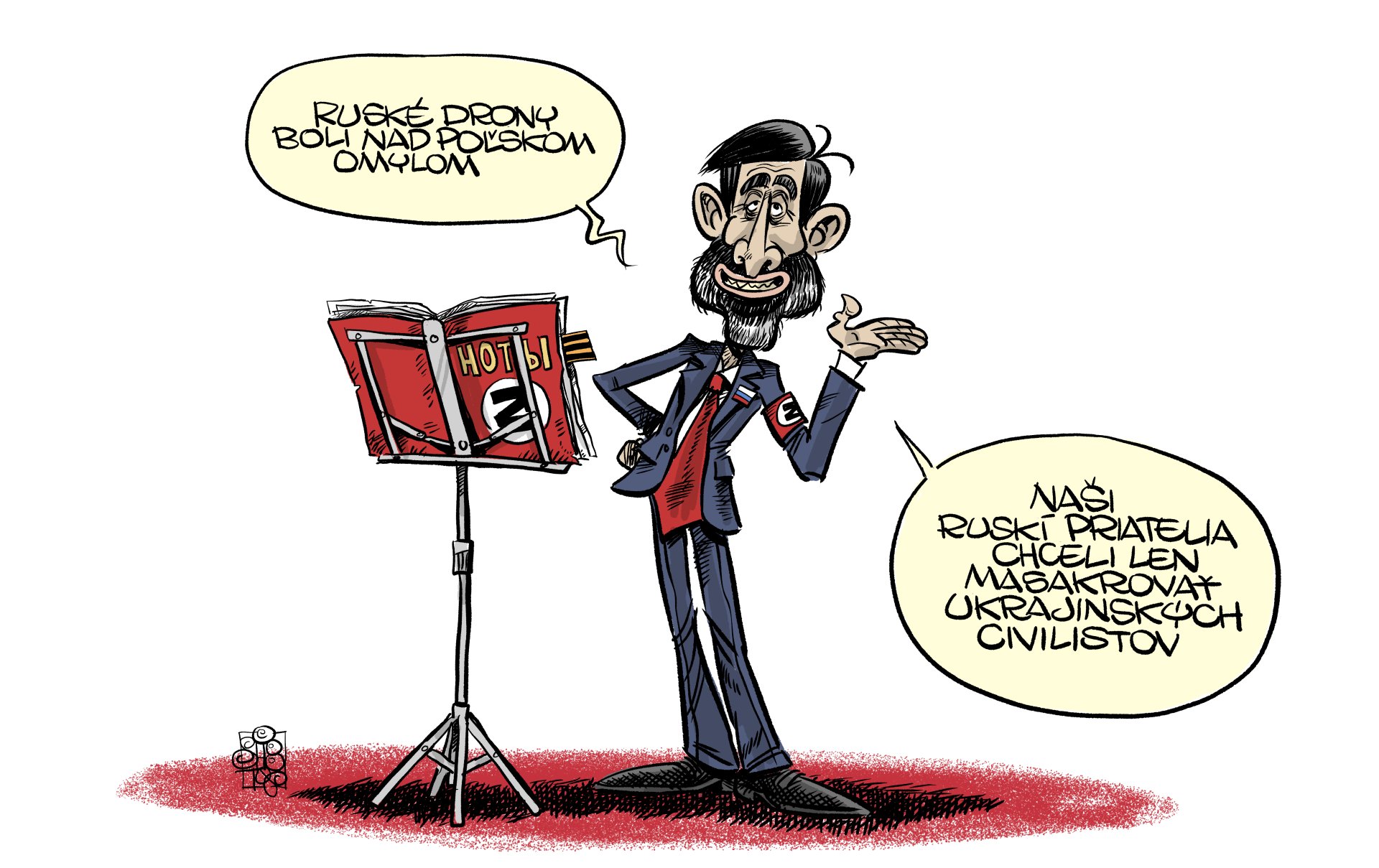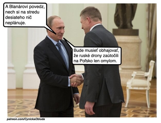 Blanár nás upokojuje tým, že verí, že drony nad Poľskom mali len zabíjať Ukrajincov Predstava, že 20 ruských dronov zaletí v súčasnej situácii nad Poľsko čistým omylom naozaj potrebuje mimoriadne vymytú myseľ, aby sa ujala. Minister Šťuka sa ale včera so svojou úlohou popasoval statočne, ba dokonca ešte aj dodal, že skutočným cieľom isto bolo len zabíjať Ukrajincov. https://m.smedata.sk/api-media/media/image/sme/4/91/9185414/9185414_625x.jpg?rev=3 |