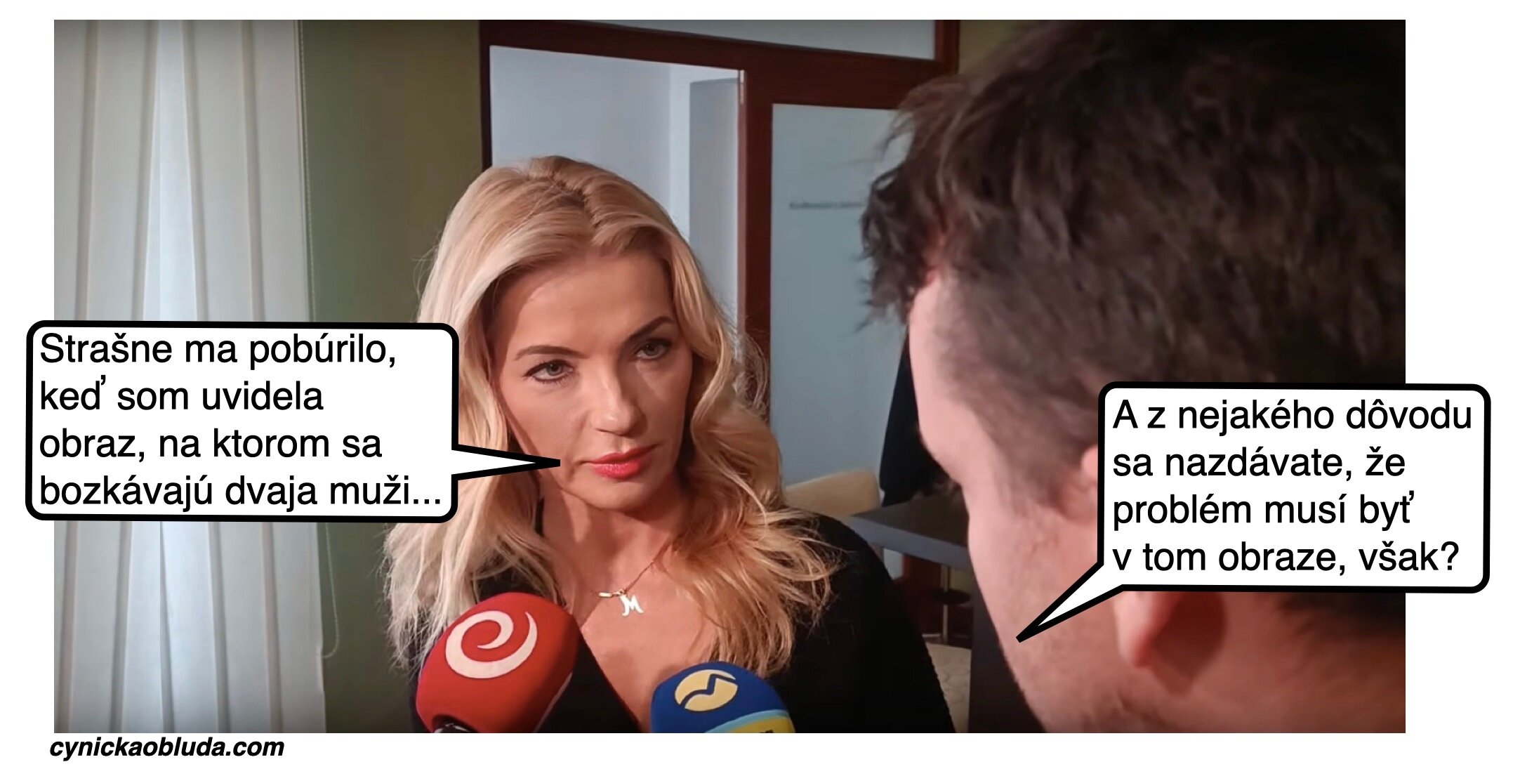 Šimkovičovú pobúrilo zverejnenie jeho obrazu, ktorý zobrazuje dvoch mužov, na výstave v Slovenskom rozhlase. A jej odkaz znel jasne: chce legislatívu nastaviť tak, aby sa nič podobné v budúcnosti nestávalo.